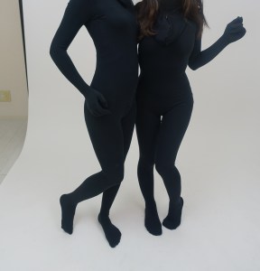 当時、モデルのお二人にはアートソン製のソフトスムース黒ゼンタイを着用いただいた(現在では貴重なゼンタイ?まだヤフオクで売られているか?)。